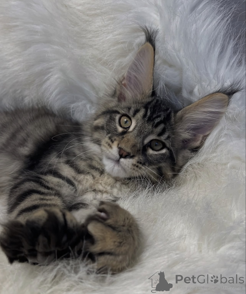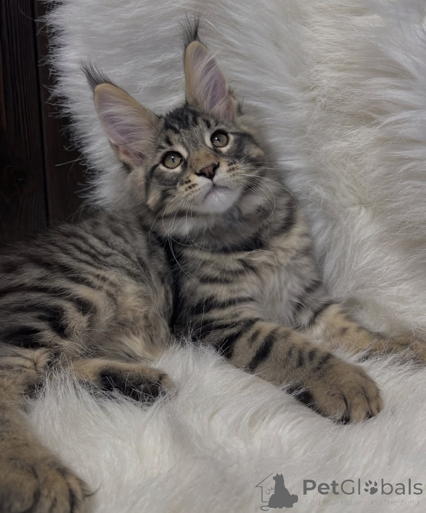 Dieses Baby zeigt typische Sanftheit der Maine Coon. Es Liebt ruhige Kuschelmomente, spielt gern und erkundet neugierig seine Umgebung. Maine Coons sind bekannt für ihre freundliche, lojal Art und ihre Starke Bindung zu Menschen. Dieses Kätzchen ist bestens sozialisiert, frisst zuverlässig und entwickelt sich prächtig. Mit seinem flauschigen Fell und seinemliebevollen Charakter wird es ein treuer Begleiter, der Geborgenheit und Freude schenkt.